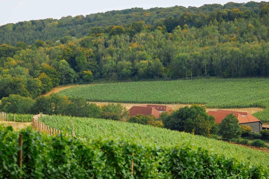 From 2009, Salgues helped the Ducketts survey potential sites, seeking chalk valleys with airflow, drainage, and frost protection. After examining 300 locations and narrowing the choice down to 100, they chose Bank Farm, once owned by royal photographer Norman Parkinson. Six miles north of Henley-on-Thames, the property is based in a naturally dry chalk valley with substantial aquifers. Samples sent to Champagne were so close in composition that the Comité Champagne asked which part of the Côte des Blancs they had come from.